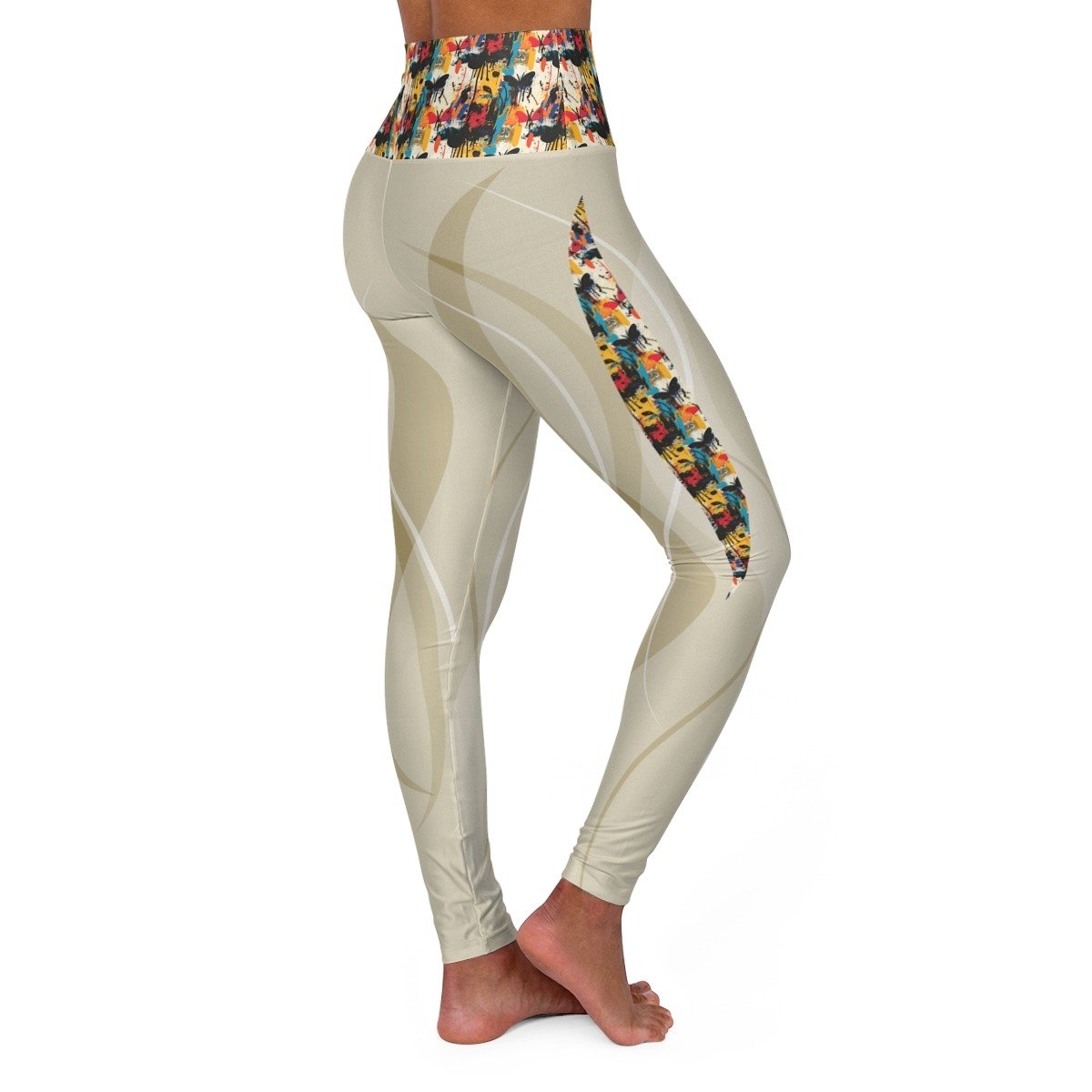Channel the fearless energy of Neo-Expressionism with full-length, high-waisted yoga leggings that blur the line between fashion and fine art. Inspired by the Neo-Expressionist movement, these leggings are alive with color, rhythm, and emotion; each pair a wearable masterpiece designed for those who move with intention and think outside the lines. Layered textures, abstract forms, and electric color placement create visual momentum, turning your every pose, stretch, and stride into a performance of art. Whether on the mat or on the move, you’re not just wearing leggings, you’re making a statement. Move like art. Be your own canvas.