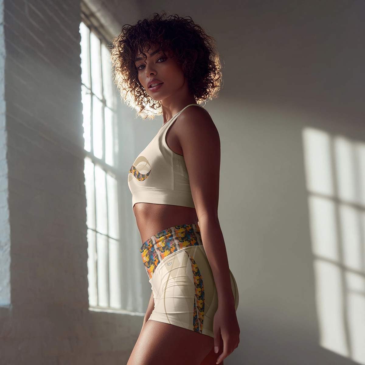 Inspired by the fearless energy of Neo-Expressionism, these high-waist spandex workout shorts bring downtown grit to your workout grind. With graffiti-inspired textures, bold lines, and bursts of color, the design channels the raw pulse of Neo-Expressionism in a high-performance cut built to move. Fitted and sweat-ready, they’re perfect for everything from intense training sessions to high-heat yoga. Because functional doesn’t have to mean forgettable; and bold doesn’t have to wait for the mat. Train loud. Move raw. Wear the rebellion.