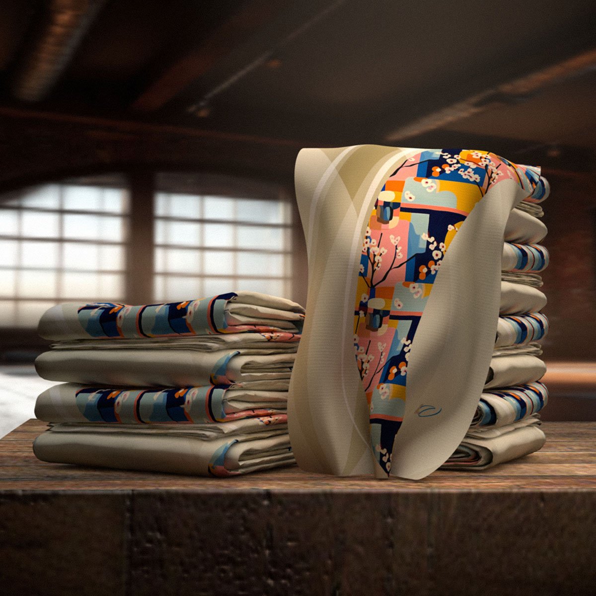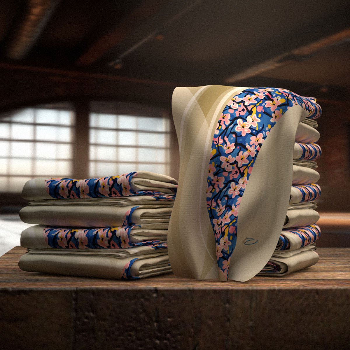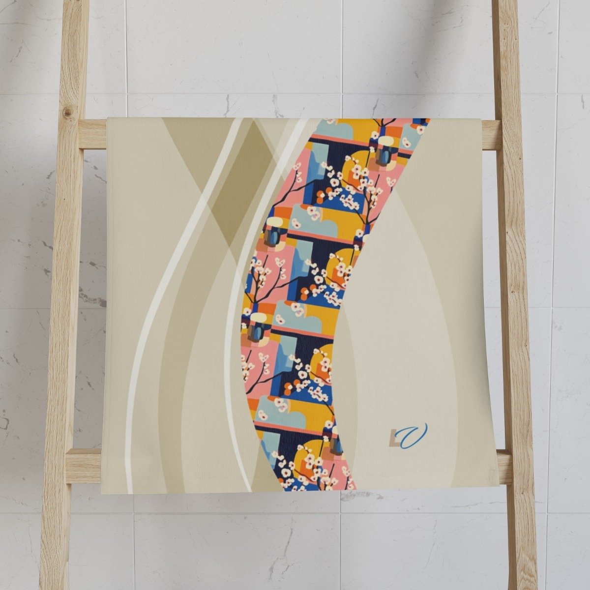 Fauvism-Inspired Gym Towel with Cherry Blossom Cutout Style. Serenity Meets Shape — A Dance of Color and Calm.