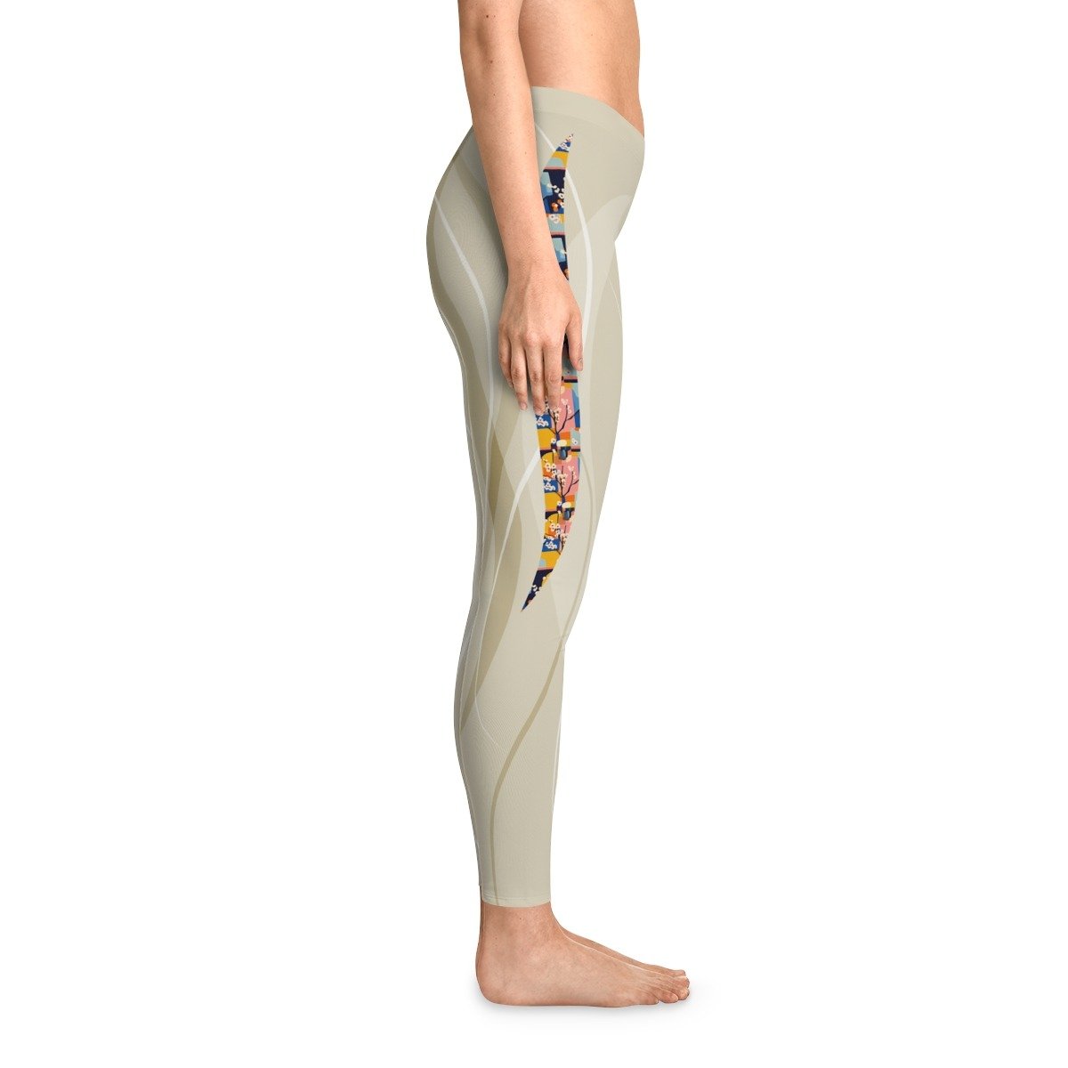 Fauvism-Inspired Yoga Leggings with Cherry Blossom Cutout Style. Serenity Meets Shape — A Dance of Color and Calm