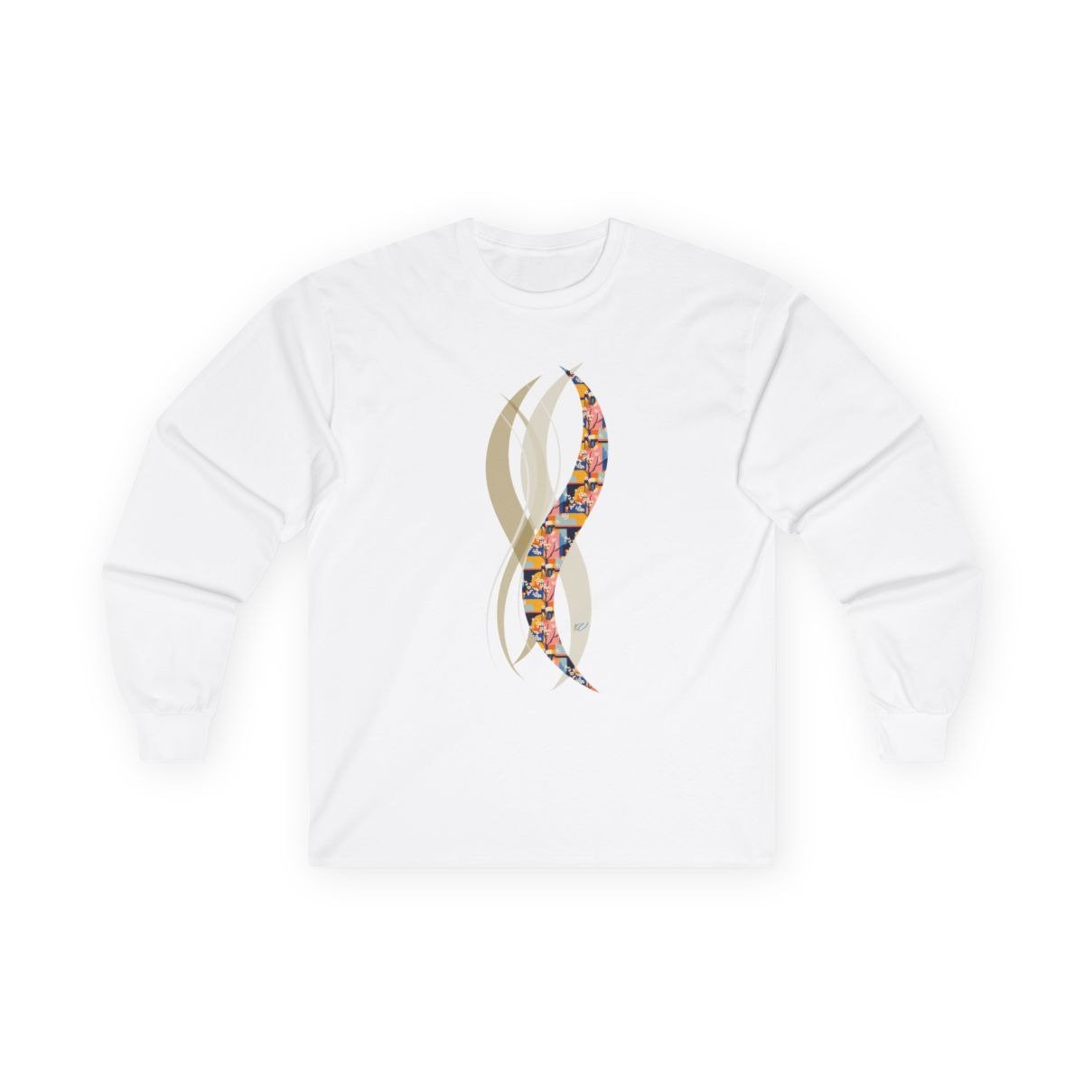 Fauvism-Inspired Long Sleeve Tee with Cherry Blossom Cutout Style. Serenity Meets Shape — A Dance of Color and Calm.
