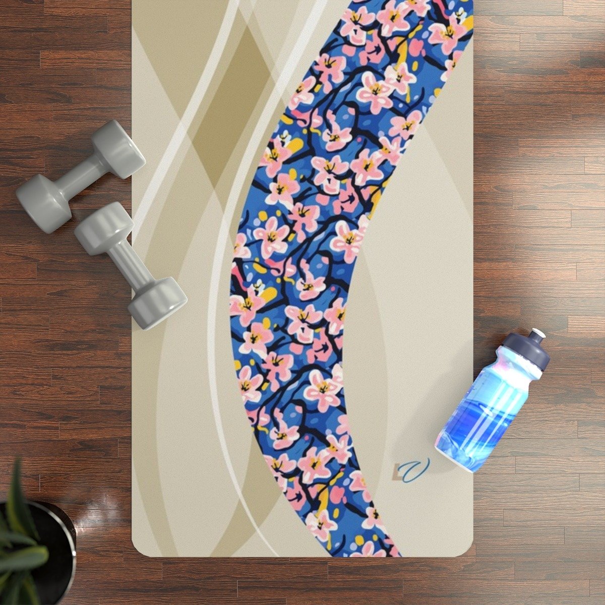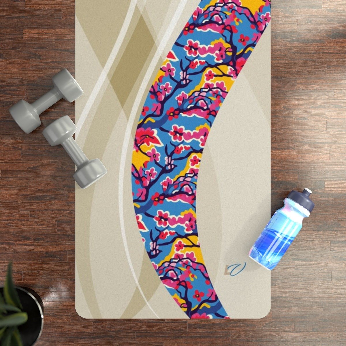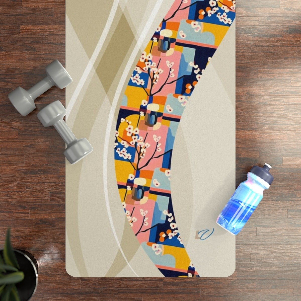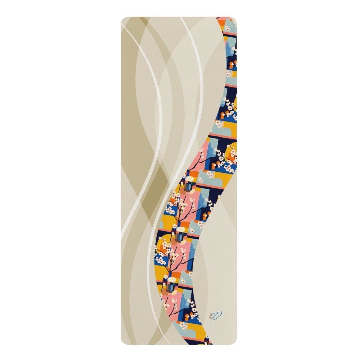 Fauvism-Inspired Rubber Yoga Mat with Cherry Blossom Cutout Style. Serenity Meets Shape — A Dance of Color and Calm