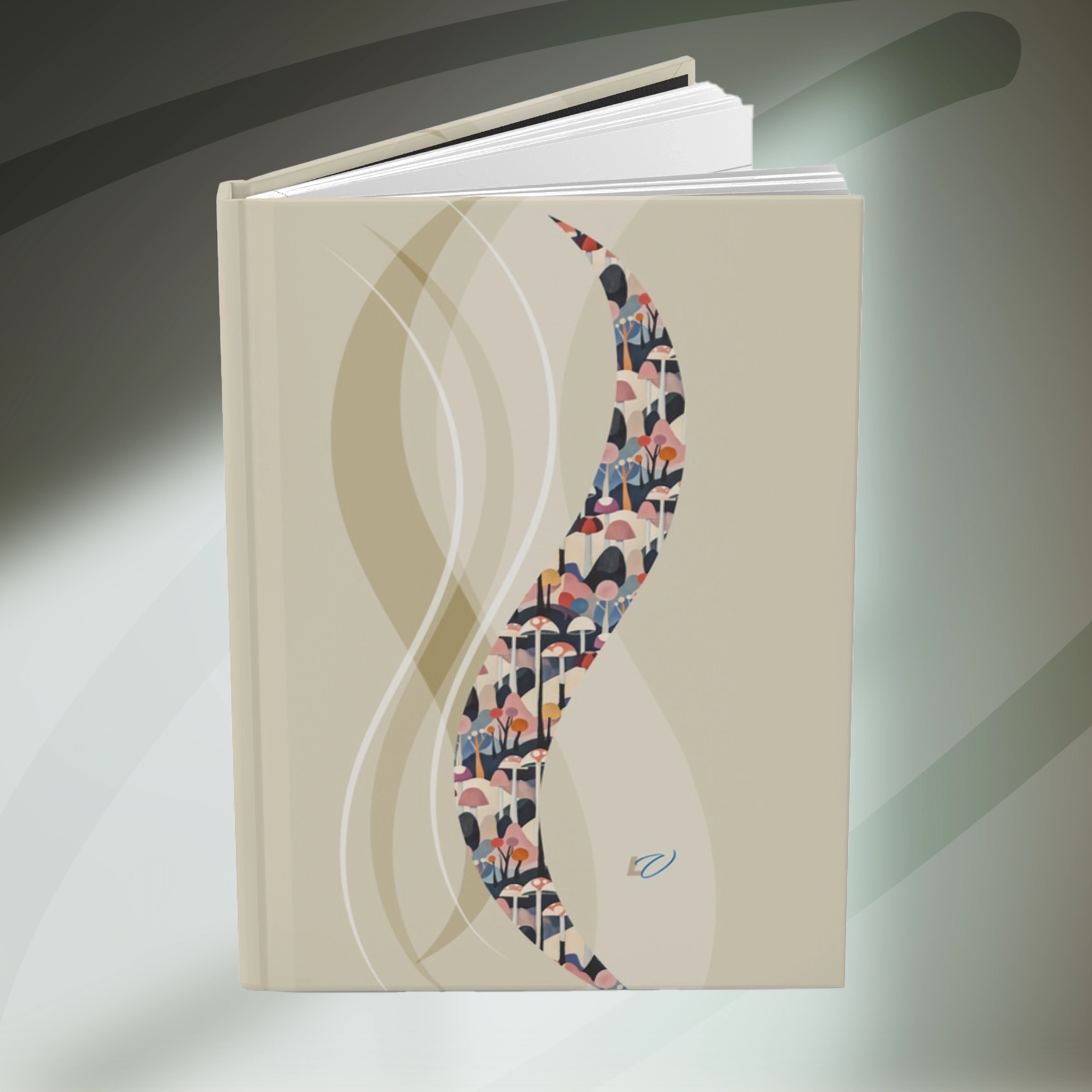 Cubism-Inspired Hardcover Journal with Abstract Mushroom Design. Deconstruct the Ordinary — Find Form in Free Expression.