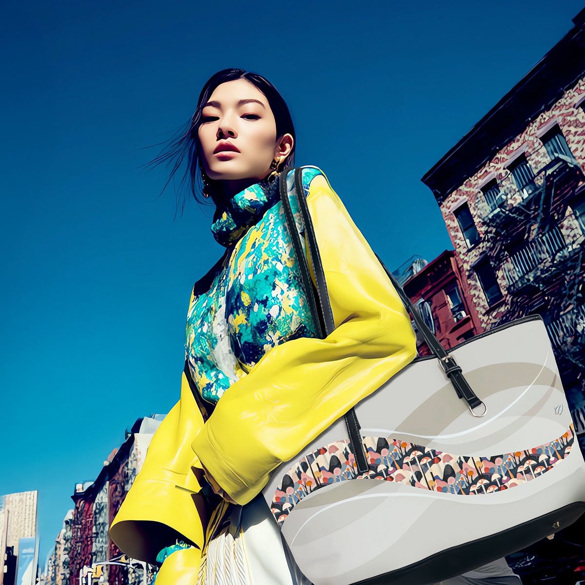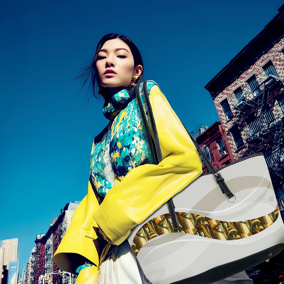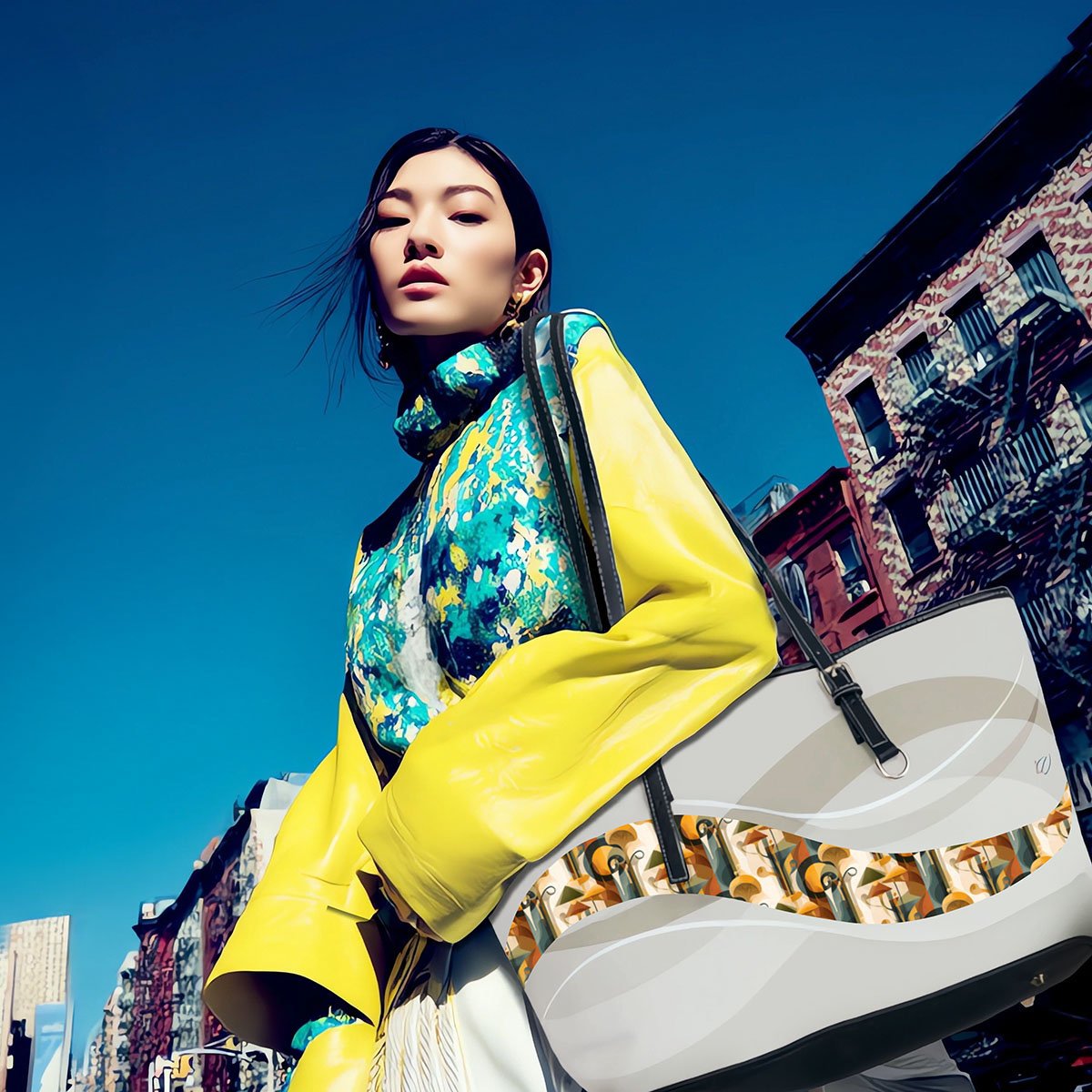 Inspired by the fractured geometry of the Cubism movement, this leather shoulder bag turns perspective into style. With angular compositions, overlapping shapes, and visual rhythm, it evokes movement through design; challenging convention while remaining beautifully functional. Crafted from high-grade PU leather and lined in durable polyester, it features gold-toned hardware and a double-sided print, making it a truly multidimensional statement; one that works from every angle. Break the frame. Carry the shift. Move like a masterpiece.