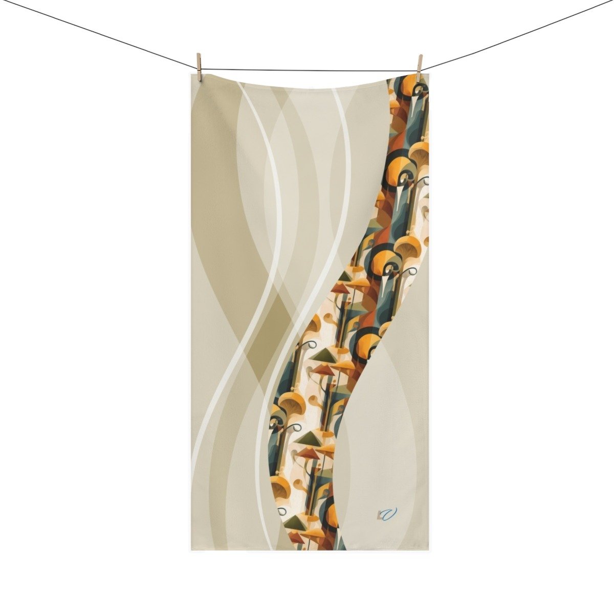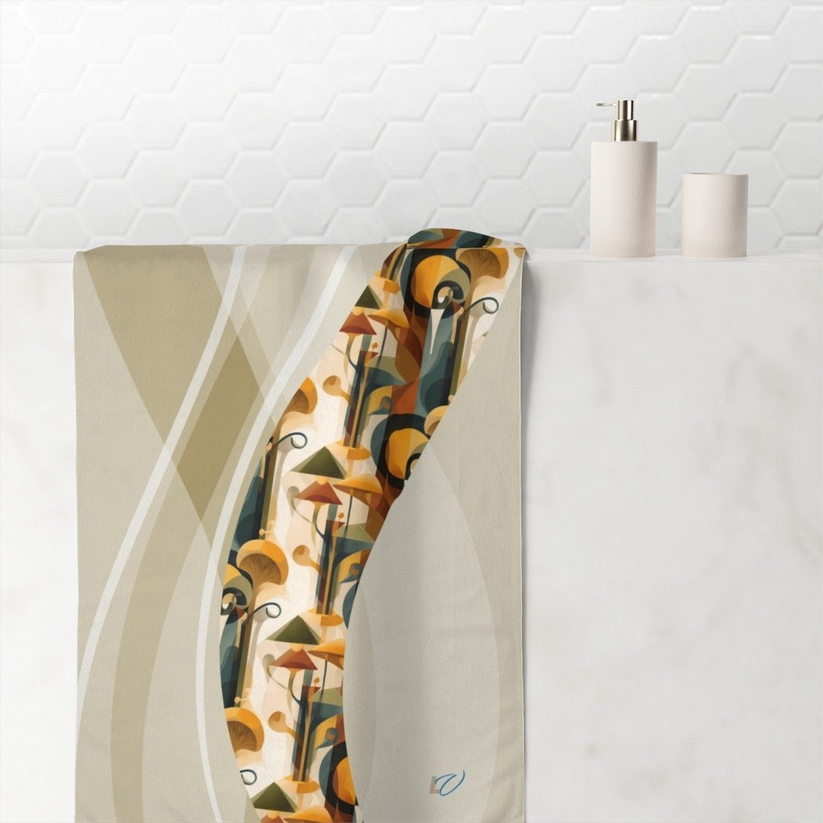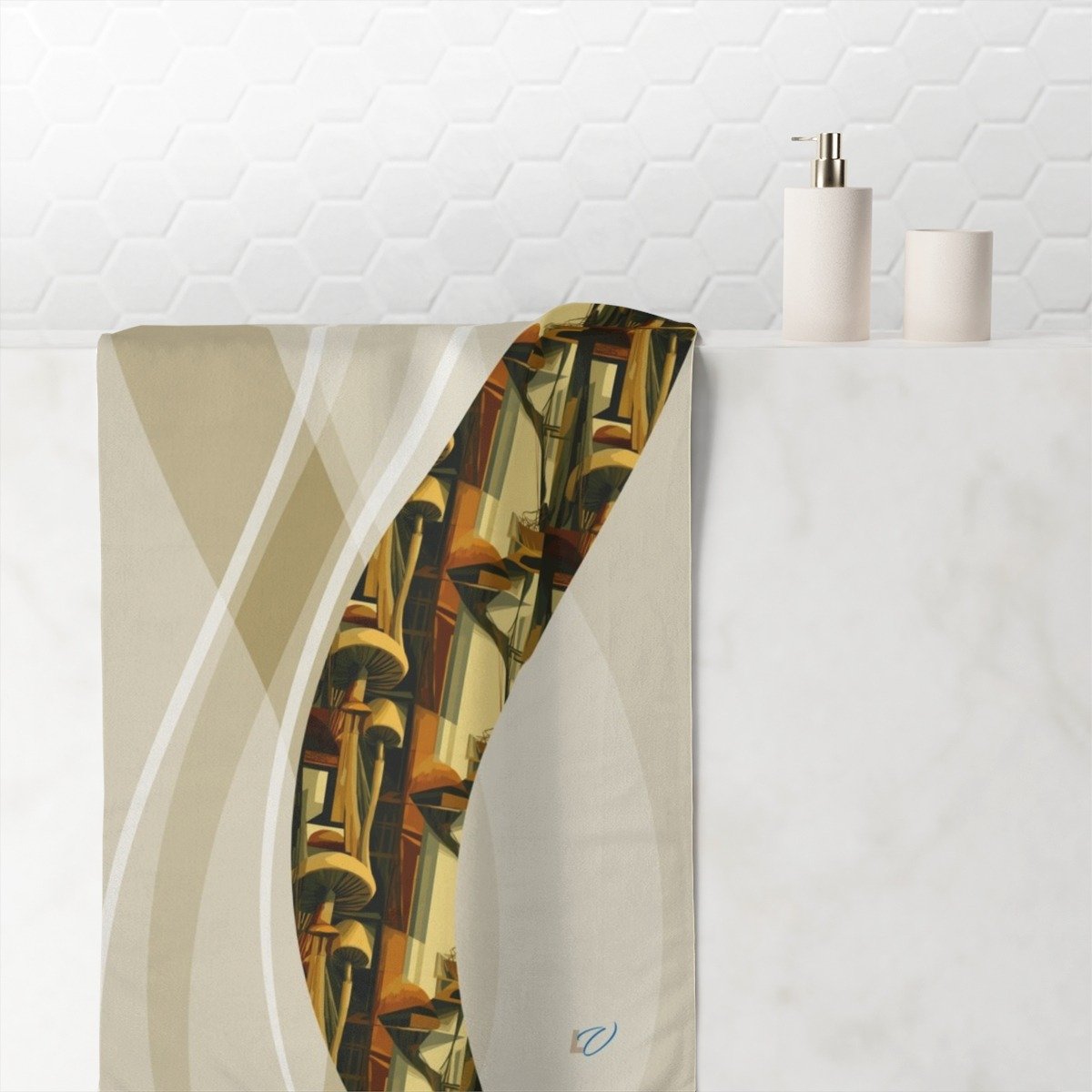 Cubism-Inspired Mink-Cotton Towel with Abstract Mushroom Design. Deconstruct the Ordinary — Find Form in Free Expression.