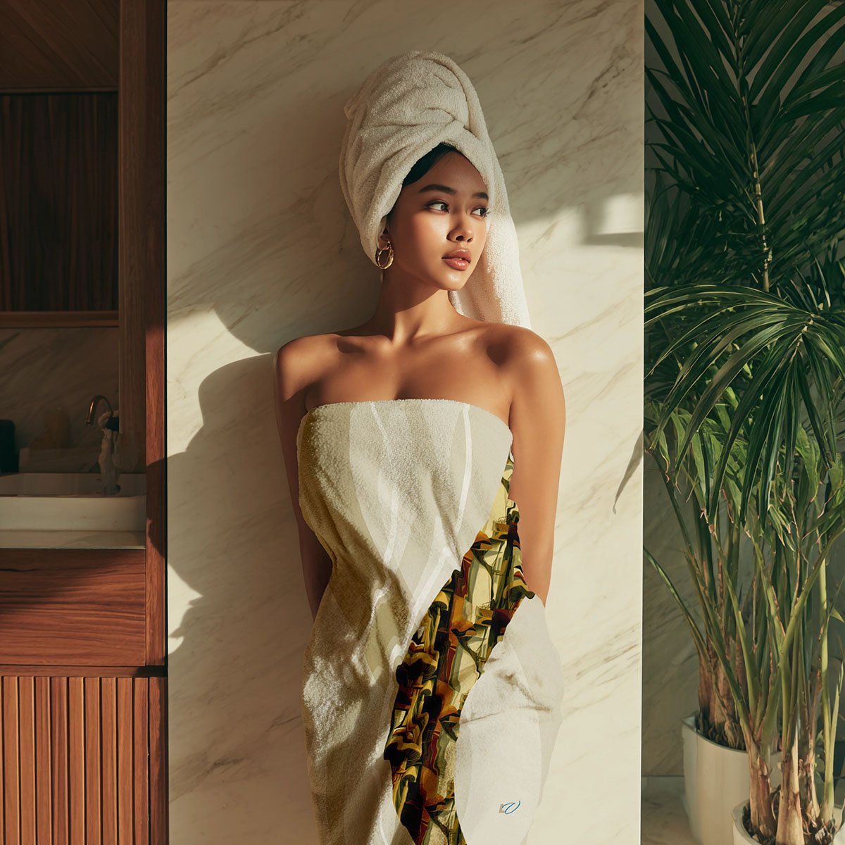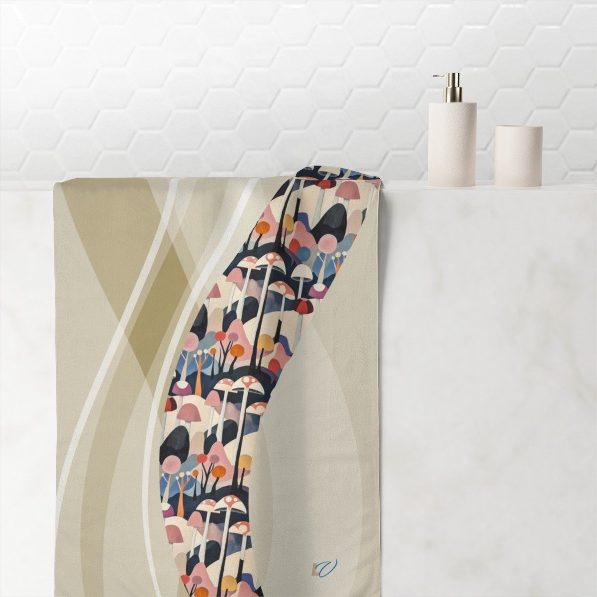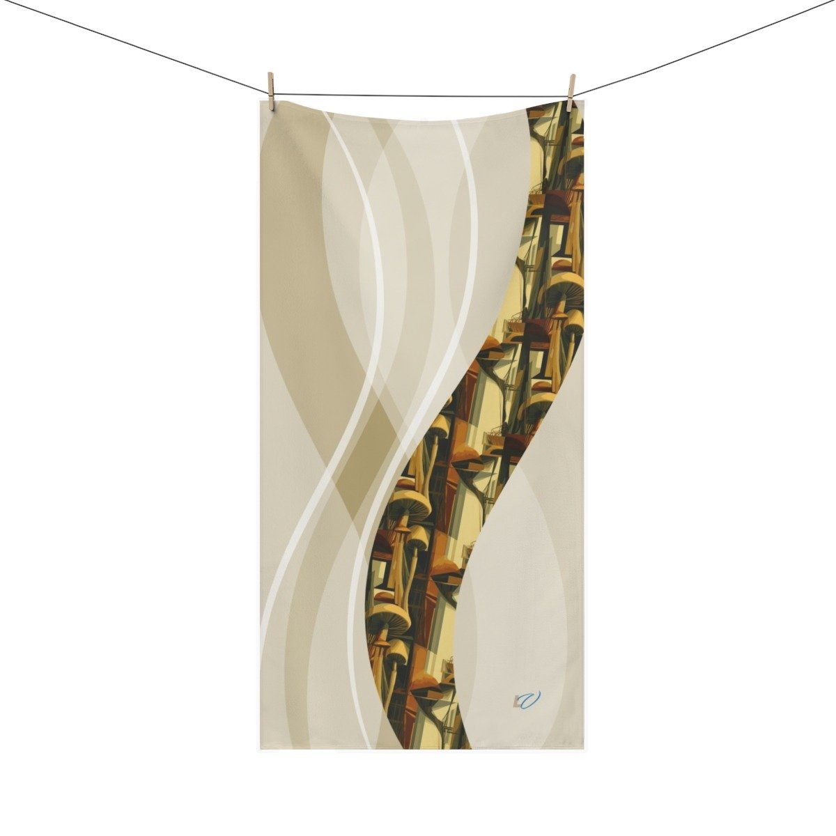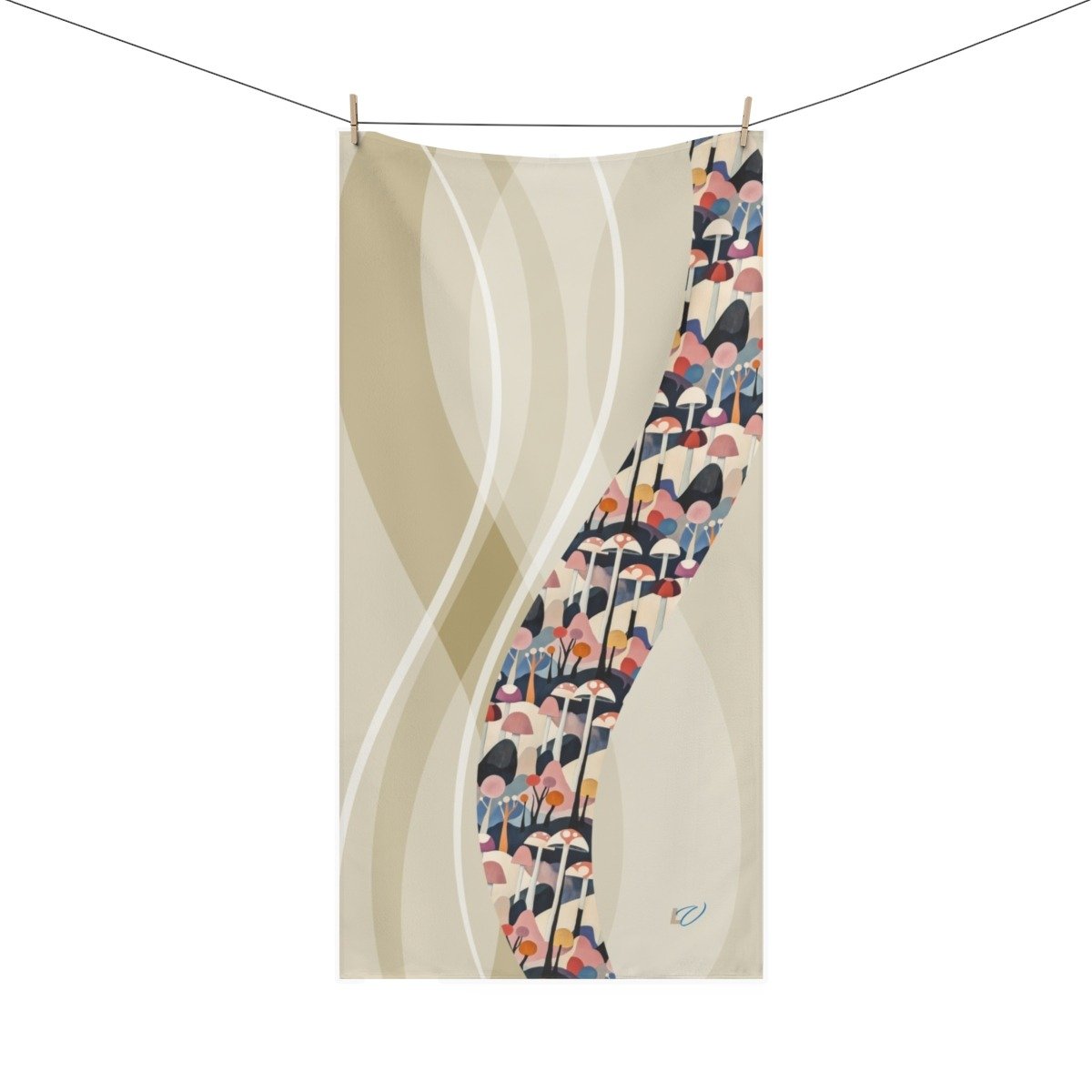 Cubism-Inspired Mink-Cotton Towel with Abstract Mushroom Design. Deconstruct the Ordinary — Find Form in Free Expression.