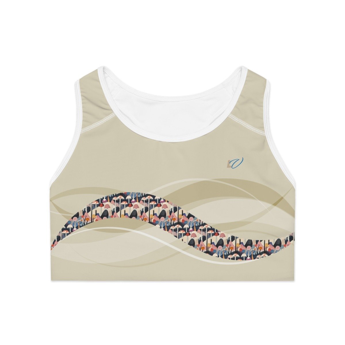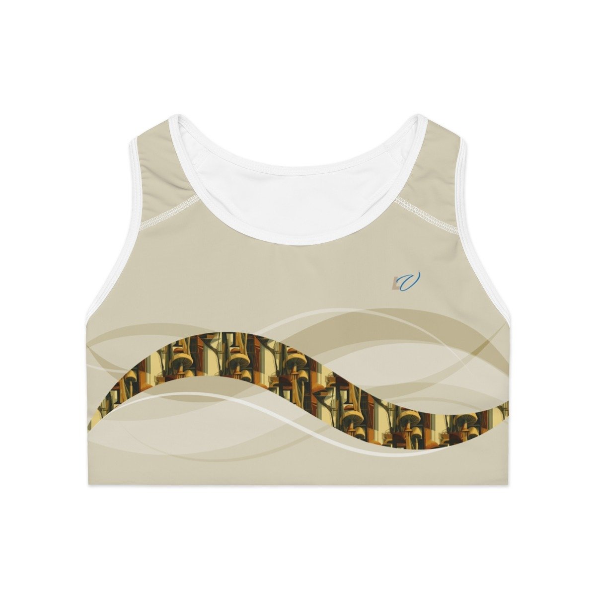 Cubism-Inspired Sports Bra with Abstract Mushroom Design. Deconstruct the Ordinary — Find Form in Free Expression.