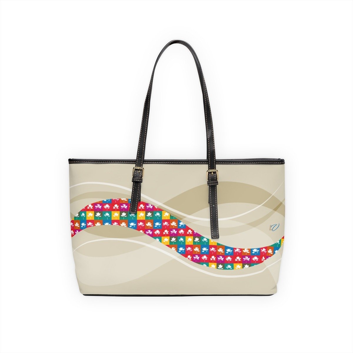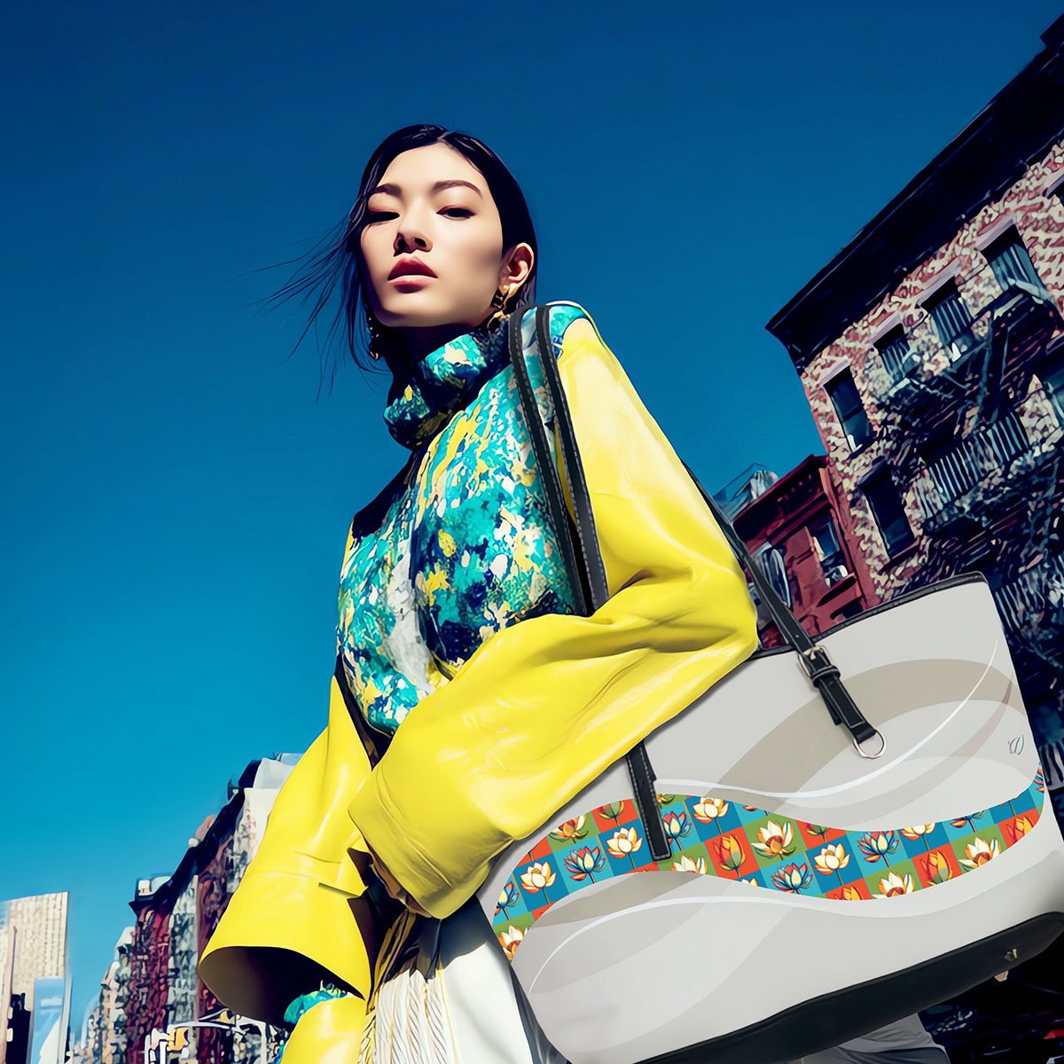 Pop-Art-Inspired Leather Shoulder Bag with Iconic Lotus Flowers. Repetition Becomes Ritual — Make Every Pose Iconic.