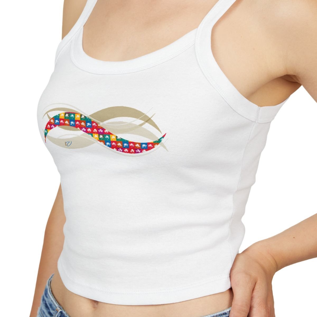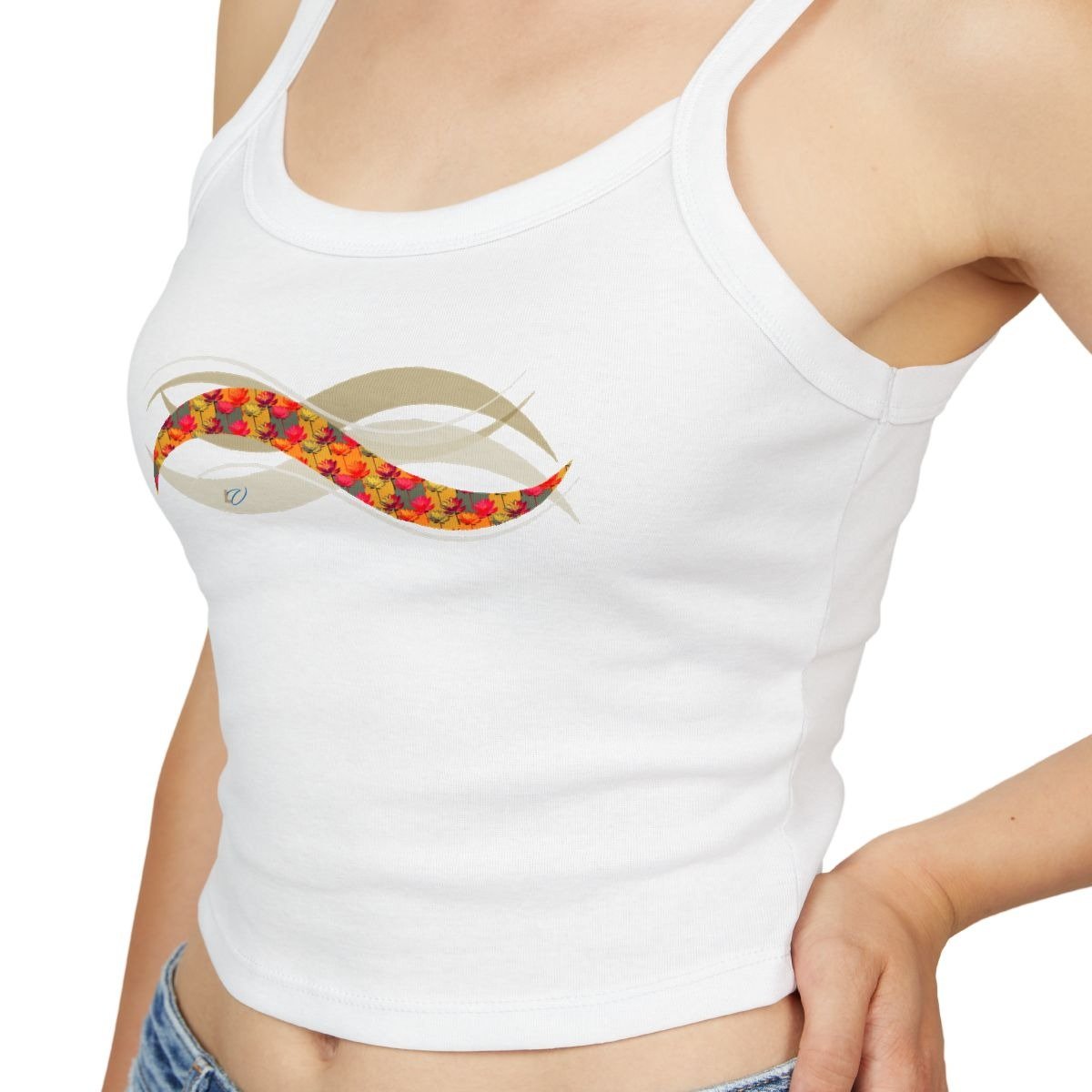 Pop-Art-Inspired Spaghetti Strap Tank Top with Iconic Lotus Flowers. Repetition Becomes Ritual — Make Every Pose Iconic.